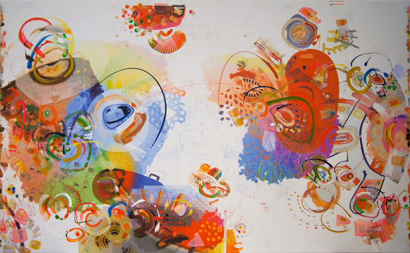 The infectious disease of the almost living (v2) Acryclic and mixed media on canvas 118cm x 118cm VIEW HERE (CURRENTLY RENTED)