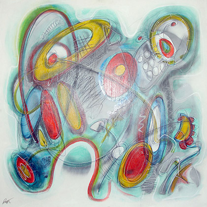 The infectious disease of the almost living Acryclic and mixed media on canvas 118cm x 118cm CURRENTLY RENTED