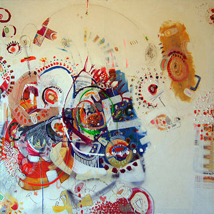 The infectious disease of the almost living (v2) Acryclic and mixed media on canvas 118cm x 118cm CURRENTLY RENTED